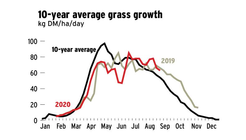 The high growth rates of August seemed to be matched with high intakes on farms due to the low DM% in the grass during the wet spell. Reassess your grass situation and ensure you identify any shortfalls early as it is much easier build covers in periods of high growth.