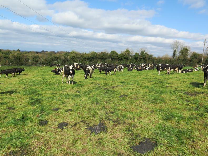 “We had an overall stocking rate of 2.7 cows/ha last year and we got caught with the late spring and the drought. We fed 750kg of meal per cow in 2017 but that increased to 1,500kg of meal last year and we bought some wholecrop silage too. We got more land and some of the heifers are being contract-reared, so overall stocking rate will be around 2.4 or 2.5 cows/ha this year,” Peter says.
