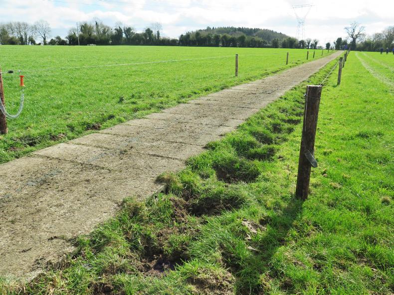 A roadway made from concrete slabs on Peter Farrell's farm.