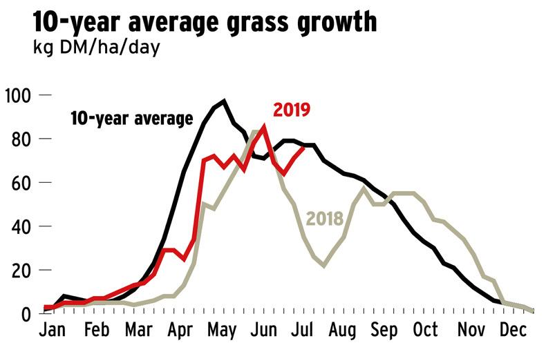 Grass growth averaged 75kg.Make decisions based on both the pre-grazing yield of paddocks and the cover per LU.For those on drier land, I would be cautious about dropping below 180 cover/LU.In periods of high growth, the farm should be walked every five days.