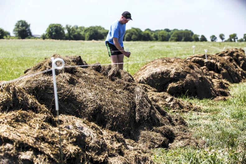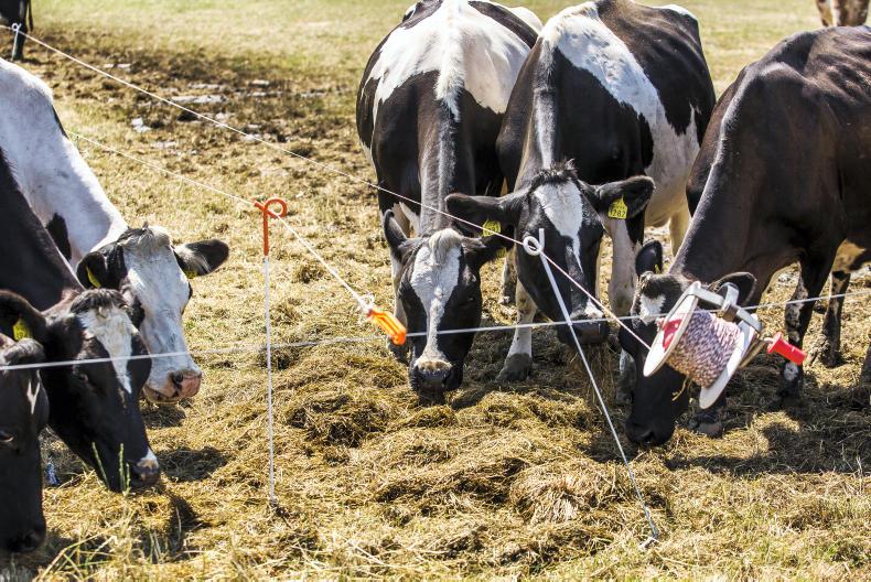 Growth rate was measured at only 8kg per day on the Greenfield Farm in Kilkenny this week, down from 24kg/day the week before. All the area that was planned for second-cut silage is now back in the grazing ground. As a result, the stocking rate is down to 2.7 cows/ha. The diet is 4kg of dairy nuts, 6kg of quality round bale silage (fed in the fields) and grazed grass. There is about another week of grass left on the farm and then the amount of grass available will be very small.