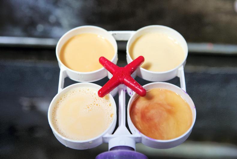 When using the CMT test, have equal amounts of milk in each paddle cup. You can achieve this by tilting the paddle and letting the excess spill out.