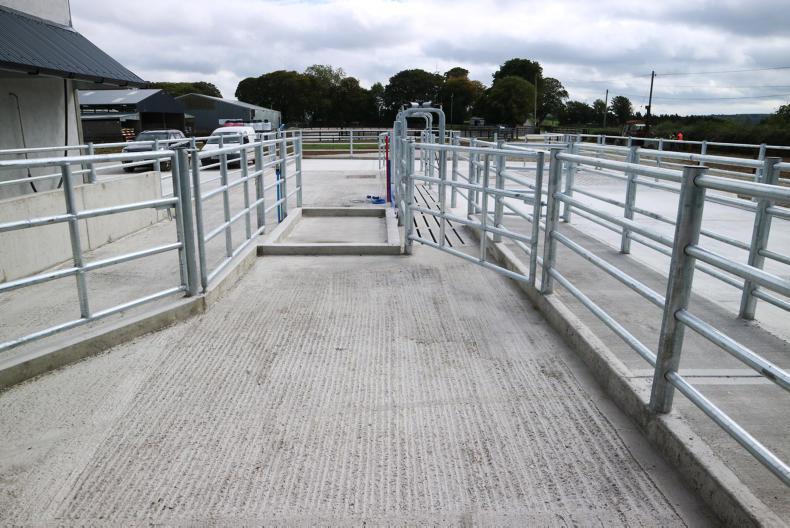 Adjoining the parlour is a roofed handling area which includes a conventional crush alongside a batch AI crush.