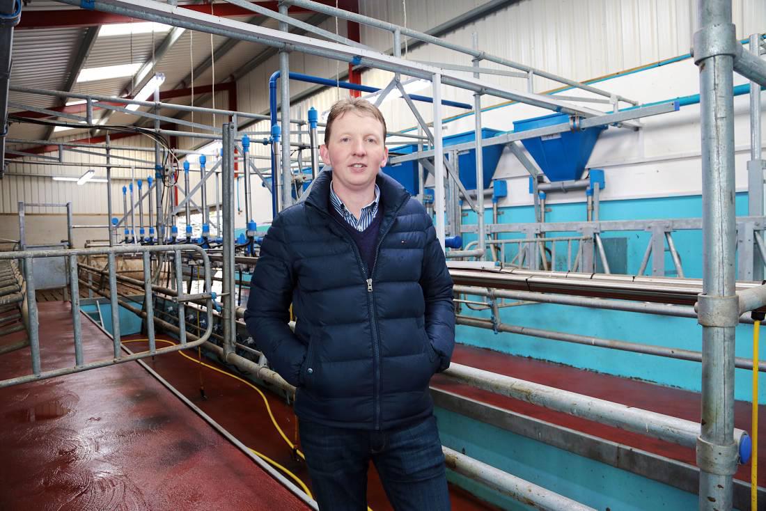 For almost a year, Tim was researching and visiting other dairy farms for ideas on the type of parlour to install. In the end, he went with a 12-unit Dairymaster parlour, with sequential baling and cluster removers, but with stallwork set up for 16 units. At €102,000 (€8,500/unit), I asked him if his parlour investment was too costly. He said: “As we were starting off with all heifers and not used to milking, we wanted good control. All heifers are standing at 2ft 2in centres but the sequential baling locks them into their spot.