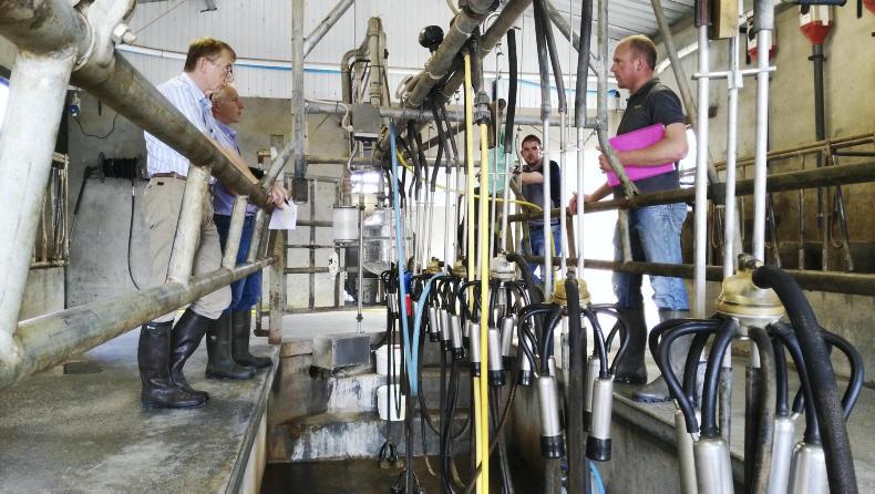 The plant wash routine is based on a Kilcosan product. After morning milking, the plant is rinsed with 80 litres of cold water, then 600ml of Kilcosan detergent is circulated for eight minutes and then that is rinsed with 80 litres of clean water.