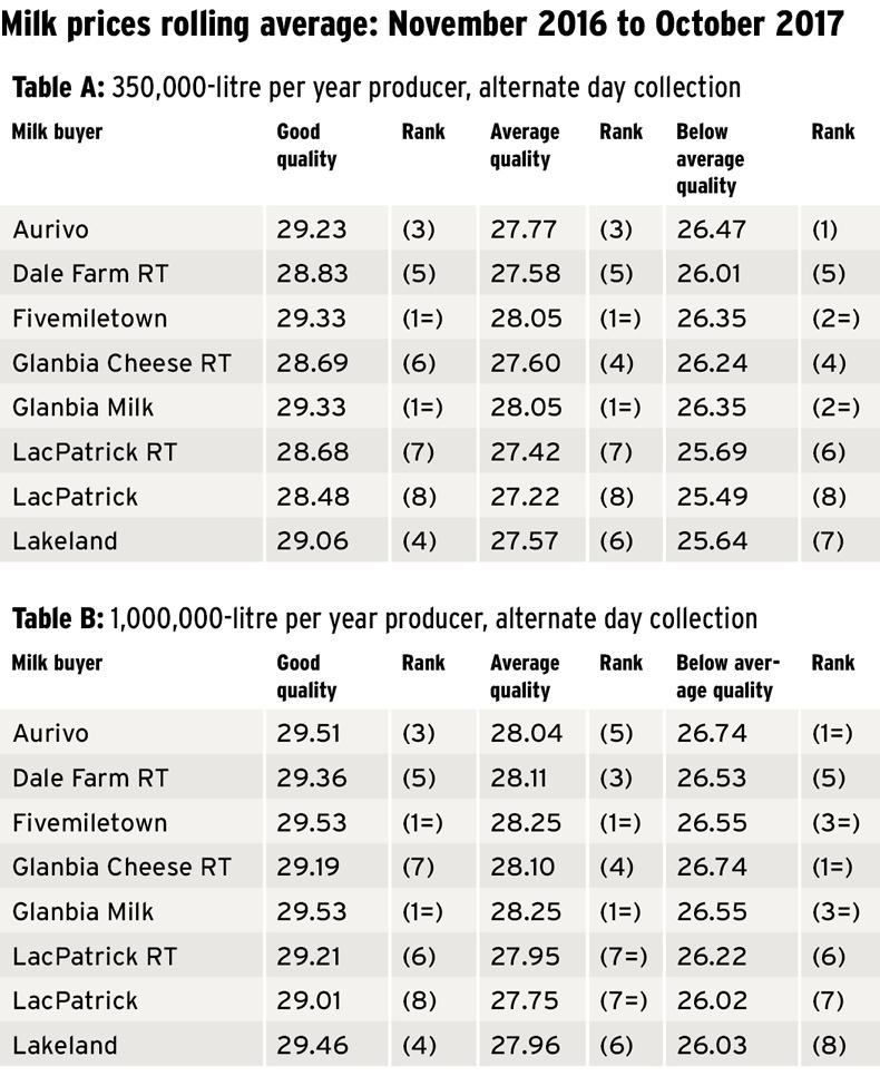 Aurivo slipped to fifth on average-quality milk followed by Lakeland in sixth with LacPatrick filling the bottom two places.