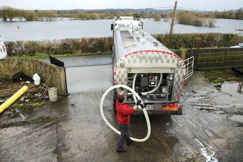 Dairygold driver Paddy Boland on an emergency milk collection run for some dairy farmers in danger of flooding around Clonlara, Co Clare. Photo: Donal O'Leary.