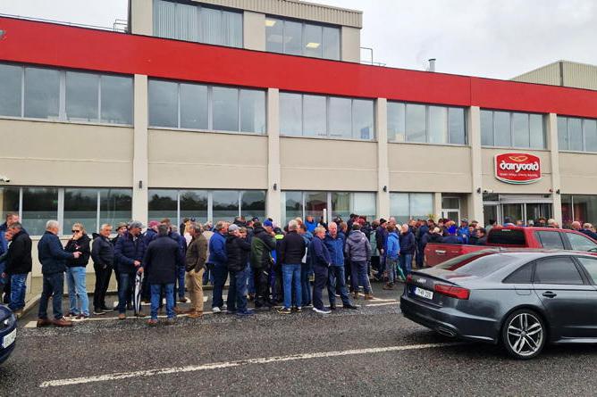 "We're here to seek the resignation of the board and management," milk supplier Eoin Burke told over 200 Dairygold suppliers gathered outside the co-op's head office in Mitchelstown on Friday.
