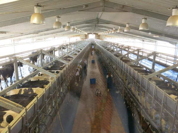 The farm has 47,000 head of dairy cattle, of which 22,500 are milking, 2,500 dry and 22,000 heifers.The average dry matter intake is 25kg per cow per day. Intakes average over 30kg dry matter in the high yielding groups.Cows are fed a total mixed ration four times per day (90 minutes before milking).Fans and misters keep cows at a steady 25oC. The mister is designed to ensure that the water evaporates before it reaches the cows’ bedding.Feed