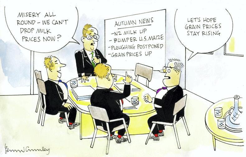 The early October milk league cartoon highlighted the rising milk supply from New Zealand and the US and the challenges of maintaining Irish milk price