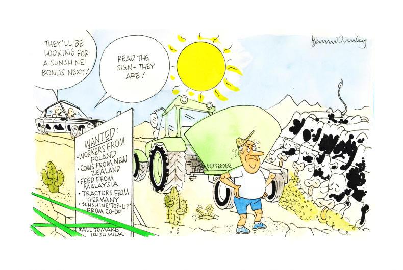 The August cartoon highlighted the drought issues in the East and the global nature of the issues facing Irish farmers producing milk.