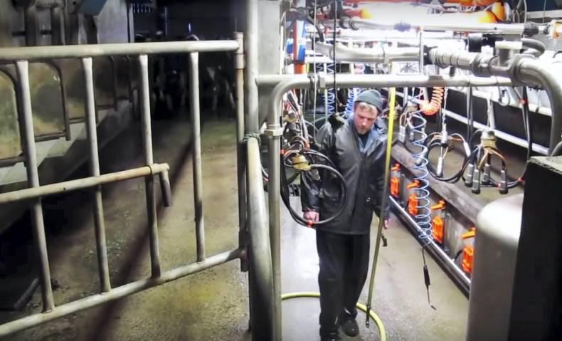 I debated with Paddy about the inclusion of the cluster removers when I first got talking to him. Were cluster removers necessary given that it was still only 16 units and effectively some experts say that you only get the throughput efficiency of half the extra row? What I mean by this is if it’s an eight-unit double-up you might get the efficiency of a 12-unit herringbone. Paddy said the research he carried out prior to installation suggested that if you are going to double up then you almost need to put in cluster removers because otherwise you would be taking off clusters, then hanging them up, then unloading the row, filling it up with cows again and then putting clusters on again. There would be a lot of wasted time hanging up and down clusters instead of putting clusters on cows.