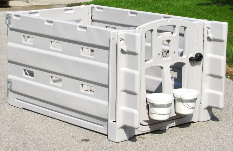 Agri-Plastics have an indoor calf pen system (see picture 2). The pen is made up of four heavy duty panels. Each panel has inter-locking tongue and groove systems that the manufacturers claim makes it quick and easy to assemble.