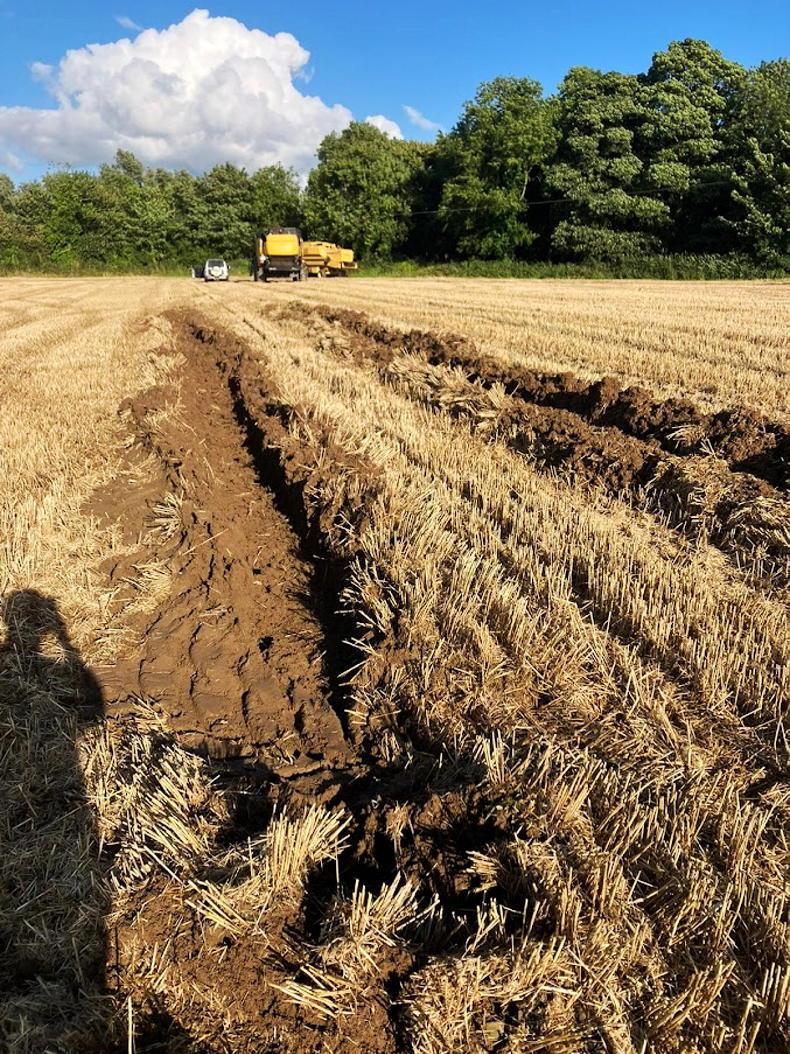 No tractors and trailers are being driven on the fields, with the combine unloading into trailers on laneways. Only 40 bales have been made so far, and the straw from the earliest-cut fields is beginning to disintegrate.