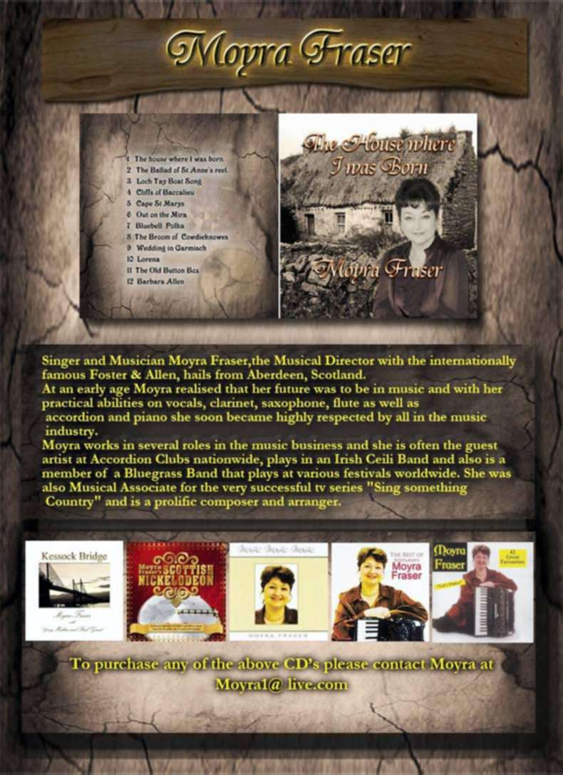 The Aberdeen native Moyra Frazer, who has resided in Mullingar for more than two decades, is known to most people in the business as a member of the Foster and Allen Band. But the Scottish lady has also managed to carve out her own niche in other genres of the music scene.