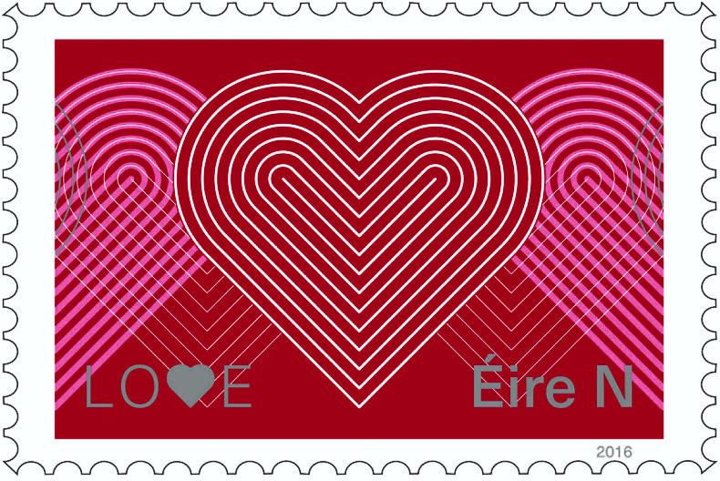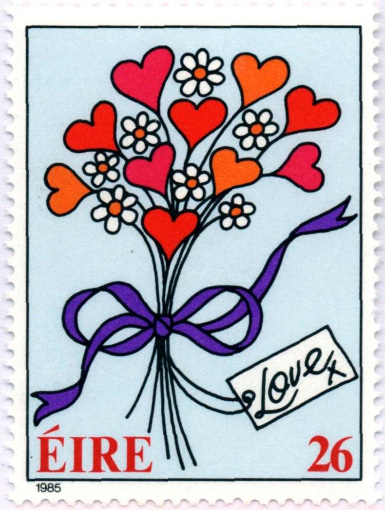 An Post has been producing love stamps since 1985. The love stamp started out as being very popular just for St Valentine’s Day but during the mid-1990s the use of the stamps evolved to be more widely used as a “greetings stamp”, popularly used on birthday cards, well wishes and to mark other happy occasions.
