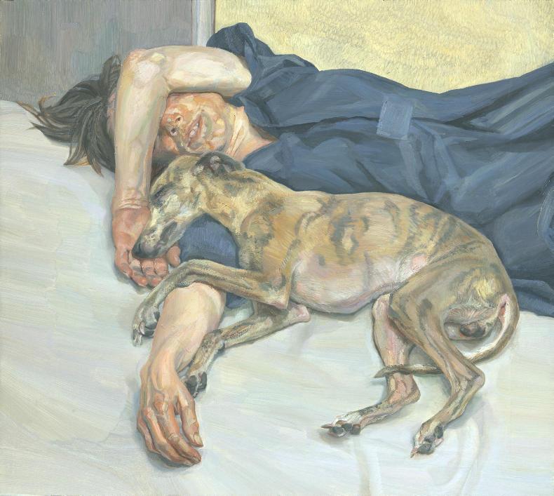 Further examination of the picture reveals a detailed background of the London skylight, while two small works by Freud lie against the wall in the sparse room they occupy. It is outstanding work.