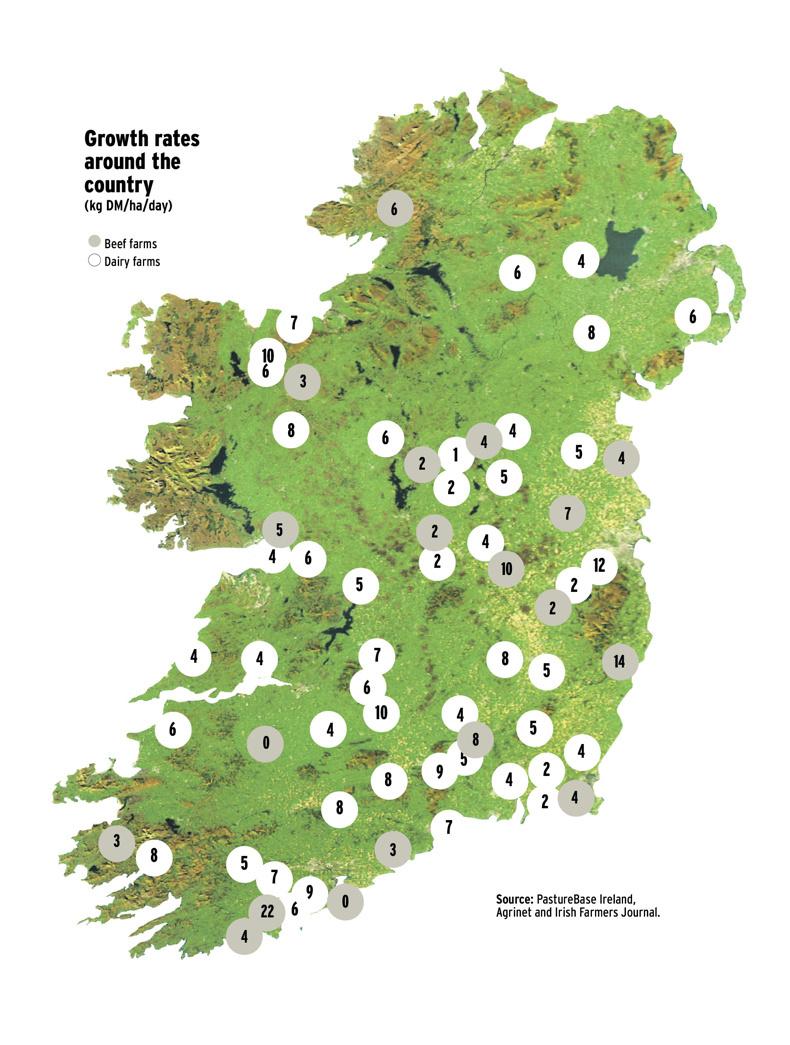 This week last year, the Teagasc Pasturebase system recorded a national average growth rate in excess of 20kg DM/ha/day – yesterday the national figure was 5.4 on beef farms. However, many of Ireland’s beef farmers won’t be concerned with how grass is growing, more with how their land is drying out. Having travelled from east to west during the week visiting BETTER participants, it’s safe to say that there are as many, if not more animals out in the midlands/west than in the east on these farms. It must be added that these farmers have stock out on their driest fields or hillsides. Other areas remain wet and need drying before they can take stock.