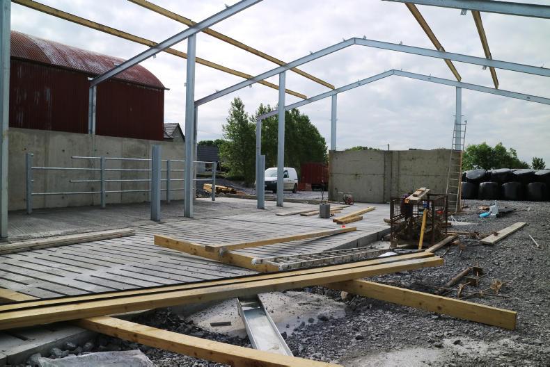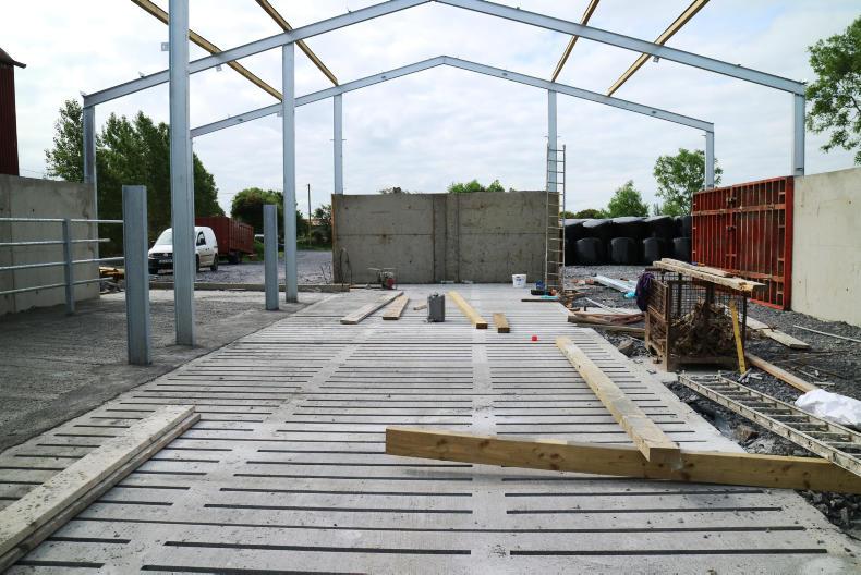 63 x 40ft.Tank in the middle with a 14 x 6ft slat.12ft creep area for calves at the back with a crush incorporated.12ft feed passage.New shed is linked to old shed with a door so all cattle can be handled by one man.Construction was done by local contractor Michael Leonard.It will cost €25,000-28,000 after a 60% grant.