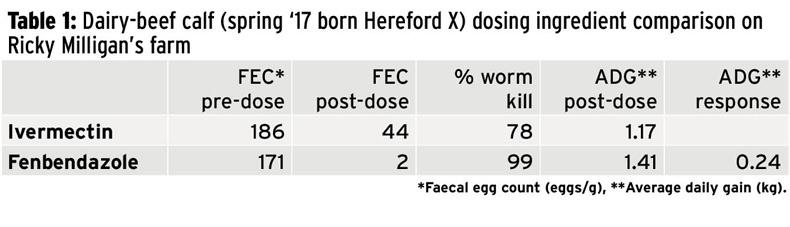 Two weeks post-dosing, the IV calves showed a 78% kill according to faecal samples, while FB had achieved a 99% kill, indicating that there is some IV resistance on Ricky’s farm.