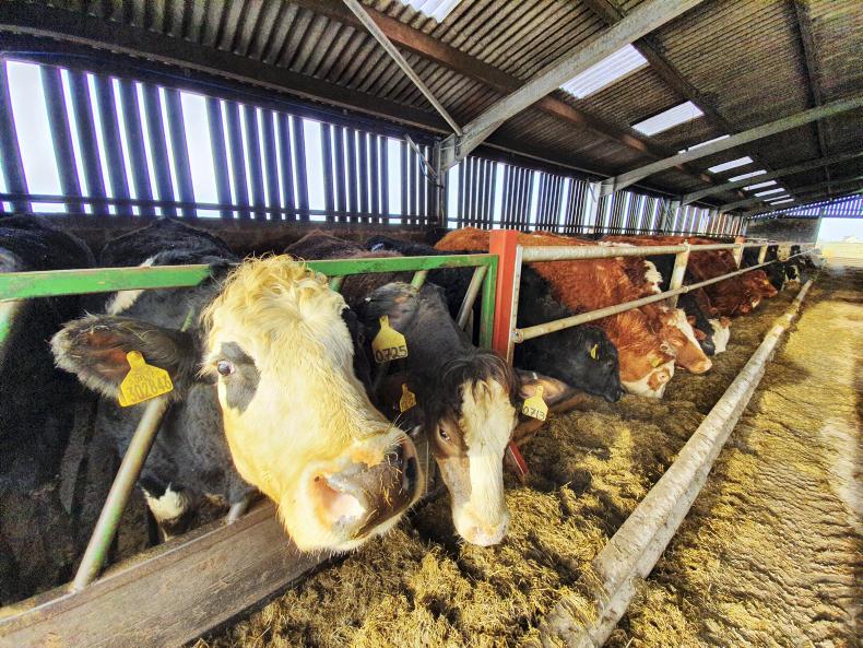 The diet is made up of 25kg of silage per day plus access to straw compared to a more traditional ration of 30kg to 40kg of silage for recently housed spring-calving cows. The dung will be drier, meaning that there is less straw being used for bedding.