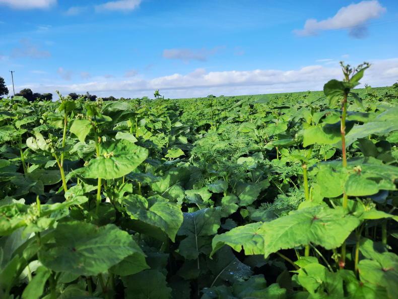 A companion crop of oilseed rape, beans, sunflowers and phacelia in mid October on Gareth Culligan's farm in Co Louth.