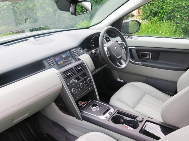 The overall feeling from driving the Land Rover Discovery Sport is one of a solid midsize SUV. There is great elbow space and the dash, while basic in some respects, has a very solid feel. The interior door cladding is practical and solid – made for work.