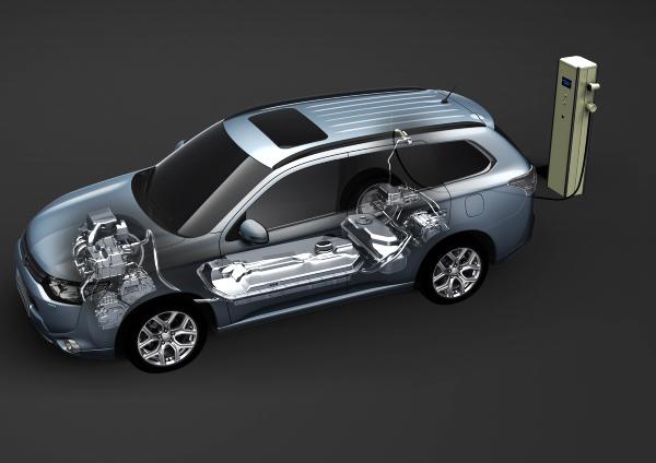 It uses 60kW Electric Motors located on the front and rear axles. This is combined with a 2.0 litre 121bhp MIVEC DOHC petrol engine. The twin electric motors are coupled to a 4WD system.
