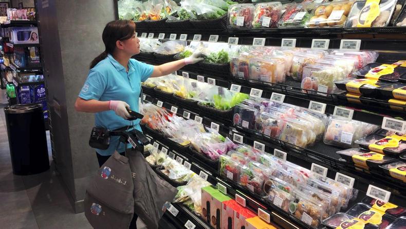 In Shanghai’s affluent Pudong district, the local branch of Hema Fresh illustrates this trend. This is a regular supermarket, where you can browse the shelves and pick up your favourite fruit, live crayfish or Kerrygold Irish butter.
