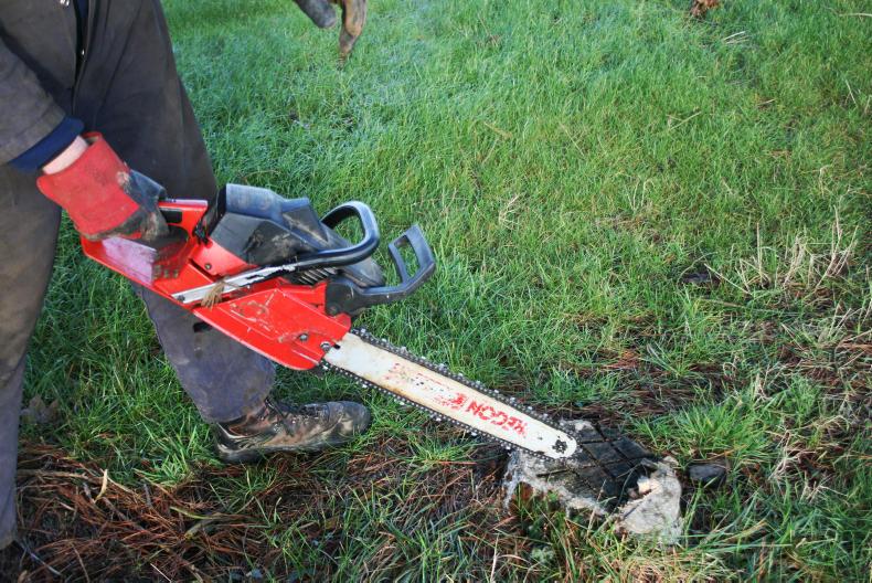 Do not be afraid of the saw. Hold it close to your body for better balance and to make the saw feel lighter. Also, make sure that no one is closer than 3m to 5m of you when working with a chainsaw. During tree felling, a greater safety distance is required