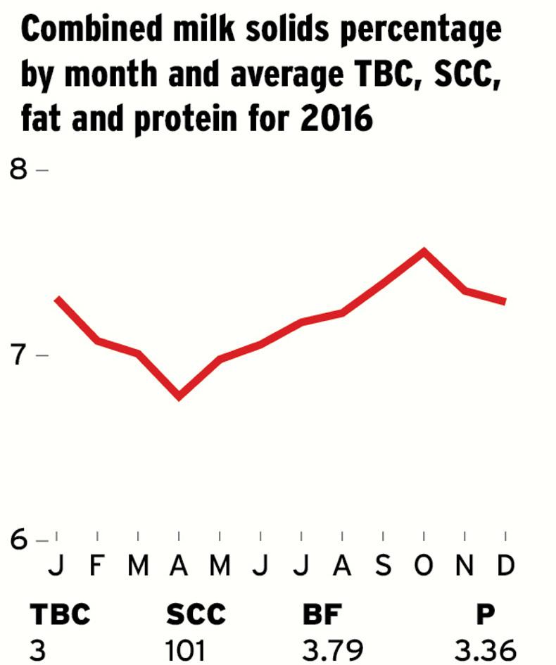 Land base around the parlour is tight at 21ha but in total over 80ha are farmed. It means supplement of about 900kg of feed per cow, coupled with quality silage and grazed grass, is the mainstay of the cow diet.