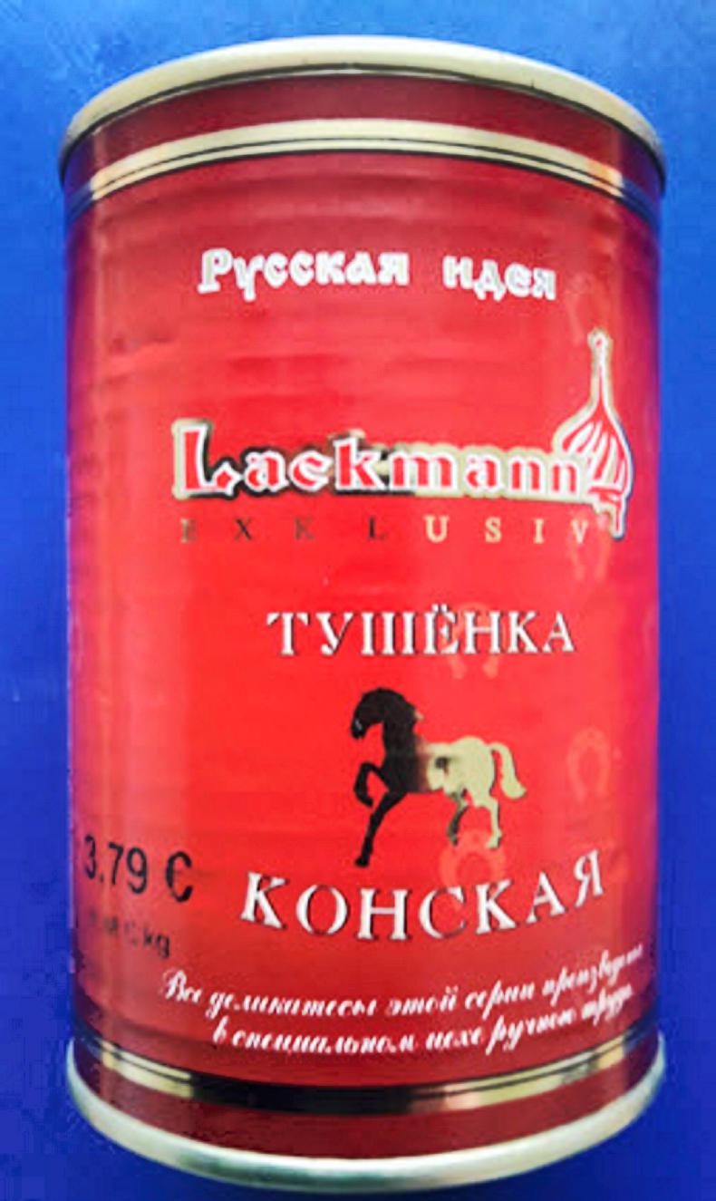 Tins of Lackmann Tuschonka Konskaya horse meat were recalled due to uncertainty as to the traceability of the meat in May 2019.