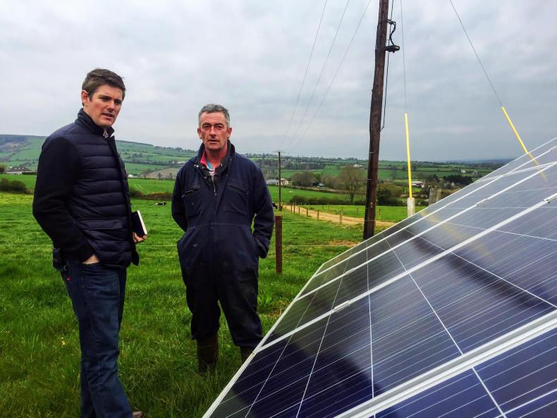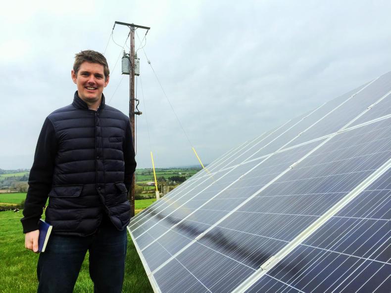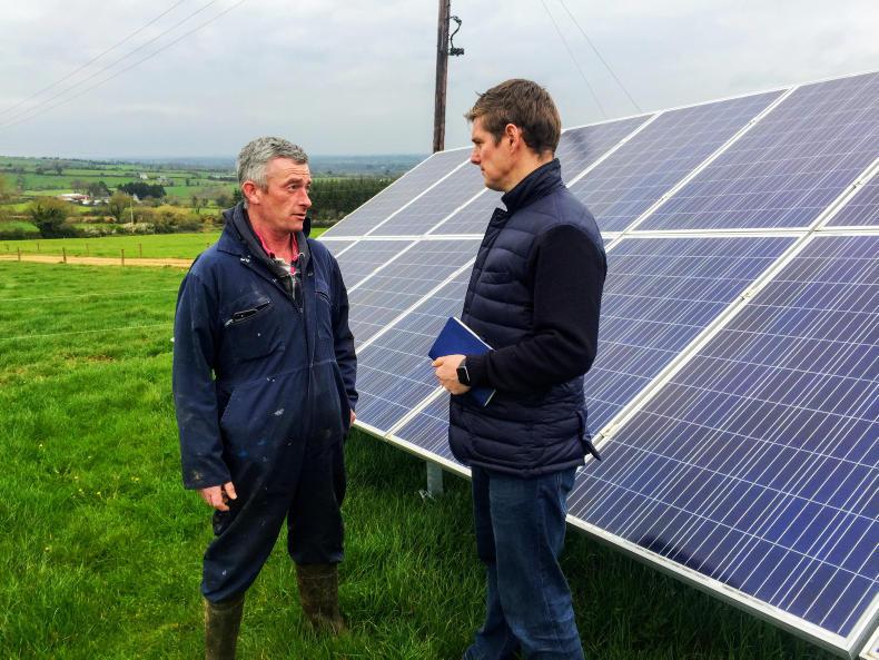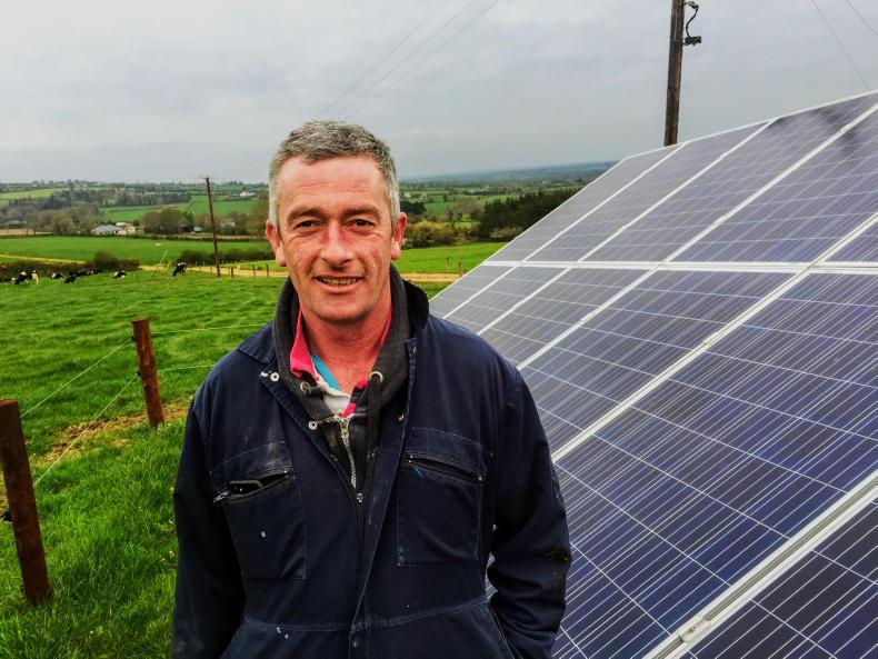 Cathal Moran’s 320 cows graze on his 176ha farm in Skeoughvosteen, Co Kilkenny – except for a small patch close to the yard, which he has fenced off to erect 40 solar photovoltaic (PV) panels. They produced 10% of the farm’s electricity needs in the second half of 2018.