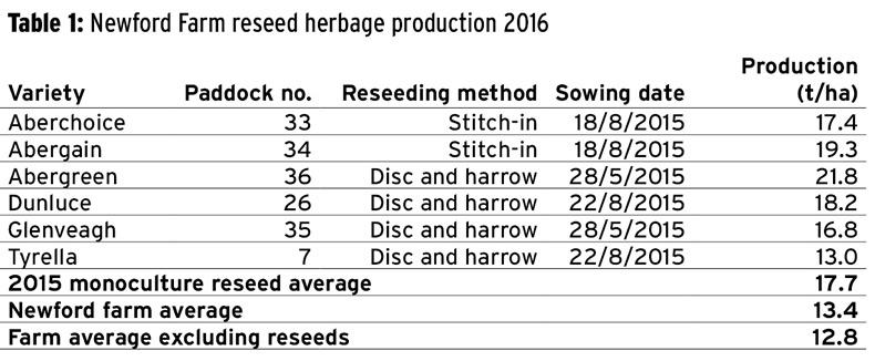 The average Irish drystock farm grows around 8t of grass dry matter annually and utilises less than 6t of this. Every extra tonne of grass dry matter utilised on drystock farms is worth an extra €105 net profit. Results like these at Newford demonstrate the potential that is there to make grass gains. However, reseeding is not to be considered before soil fertility (lime, P and K) is optimised.