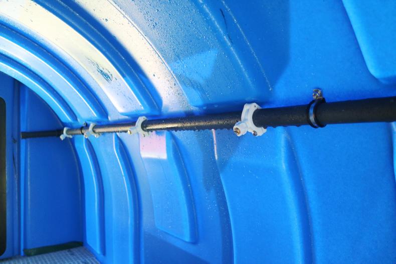 The sheep shower unit, manufactured by Harlequin Manufacturing, can be best described as an oil tank-like structure, made from moulded polyethylene, with a spray system that can apply dip through 22 jets at a flow rate of 140 litres per minute. The jets are located all around the structure with four located on the removable heavy-duty mesh floor.