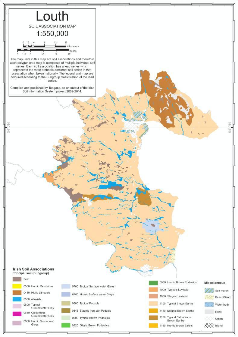 The landscape to the south of Dundalk is mostly comprised of lowlands that are made up of limestone glacial till, predominantly associated with luvisols (movement of clay down the soil profile).
