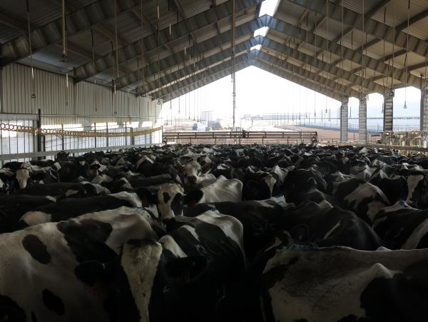 The Quail Ridge Dairy has 13 acres roofed and is home to 4,300 milking cows divided into 10 groups. Cows are milked three times a day in a herringbone 50-unit double-up parlour. The facility has the capacity to milk 600 cows per hour and is producing between 330,000 lb and 350,000 lb (140,500 to 164,000 liters) of milk per day. This effectively means that every three hours they fill one of the seven milk trucks which leave the premises daily. The unit computer system can automatically email the processing plant to request a truck to collect the milk as soon as a tank is getting full.
