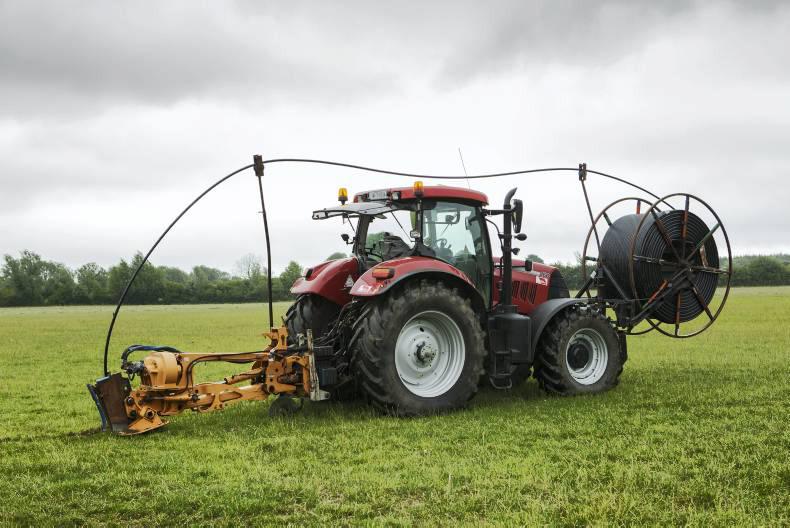 For this reason, the unit weighs in excess of 11.5t, which aids traction. The drum on the front of the tractor is capable of holding 3,000 metres of 32mm pipe, 2,000 metres of 40mm pipe or 1,300 metres of 50mm pipe, which unwinds as the tractor moves. Having the drum mounted on the front of the tractor ensures no stress on the pipe, which goes over the cab and down the chute at the back of the blade.