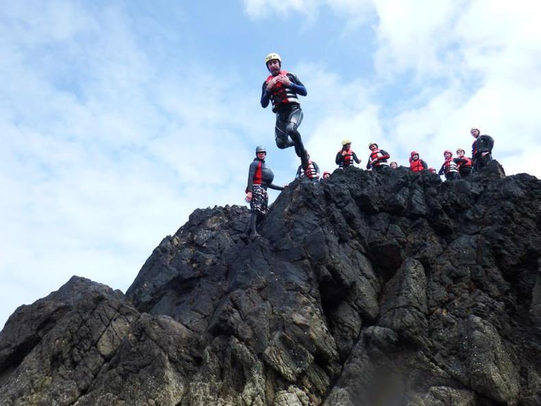 For coasteering, we were told to bring a swimsuit, towel, old runners (to wear in the water) and a tight t-shirt or rash vest. Luckily the weather was good, otherwise if the swell was too strong in the sea an alternative activity might have had to be organised for the afternoon session. For anyone who isn’t au fait with coastering here’s my simplistic description: it involves climbing and walking along the rocky coast and jumping off rocks into the sea. We all wore life jackets in case you’re wondering and it was a fantastic experience. The water was warm, the sea was calm and there is a great thrill jumping off high rocks into the water below. No one was forced to jump off the high rocks, it was left up to you to do whatever you were comfortable with.