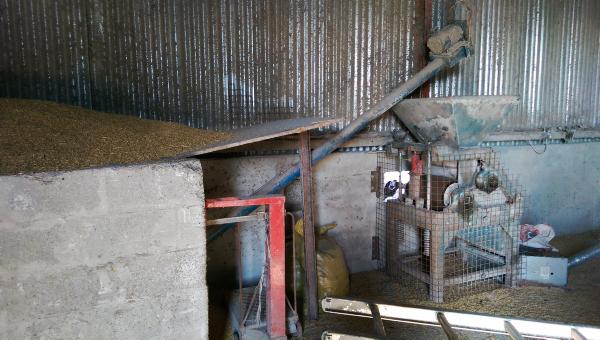 How the grain is transferred from storage to the roller mill’s hopper is a critical part in any system. Ease of filling, speed of the transfer system and safety are important in putting a system together. If the roller mill has a suitably large hopper, then it may be possible to fill it with a tractor and loader. At last, a use for the small loader bucket kicking around the yard for years. This system requires room for dry storage of both rolled and unrolled grain. It also needs to be tractor-friendly, with a good concrete floor and access for the tractor.