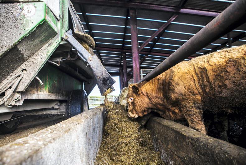 The most important component of a healthy diet is water. Water is the number one negative on Irish farms when it comes to ad-lib finishing. When talking about water, there are two factors: the cleanliness of water and the availability of water. A finishing animal eating 14kg to 15kg of dry matter will drink up to 60l of water each day. Drinkers should be big enough so cattle can stick their mouth in and drink freely – small bowl drinkers are not sufficient.