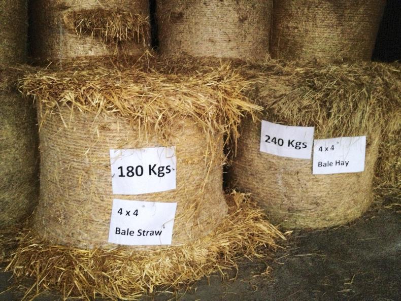 In general, a 4 x 4 round bale of straw will weigh about 140kg to 150kg, but this can vary from 130kg to 160kg and up to 180kg in bales packed very tight. Eight x 4 x 4 bales weigh about 540kg to 580kg, but, again, this can vary between 480kg and 600kg, while 8x4x3 bales weigh in general from 360kg to 380kg. Small square bales weigh about 12kg to 14kg. It is worth weighing a random sample where a scales is available to get a more accurate assessment of supplies.