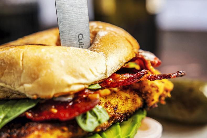 Amelda often makes these spiced chicken BLT burgers. They are one of her specialties.