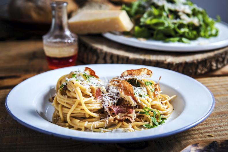 Pasta Carbonara. \ Photography: Philip Doyle. Food styling: Janine Kennedy.