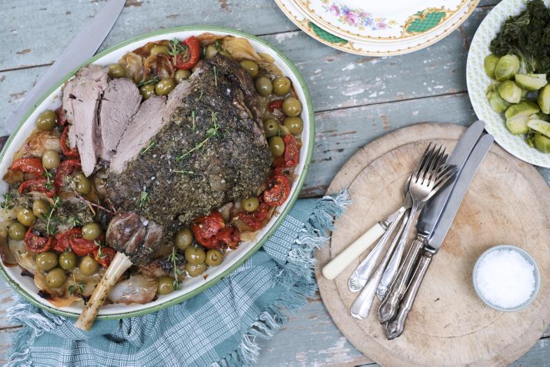 1 Place the oil, anchovies, capers, dried herbs, bay leaves, garlic, lemon rind and juice, and plenty of seasoning in a food processor, then whizz until smooth. Pierce the lamb all over with a sharp knife to help the marinade penetrate the meat, then spoon it on top and rub into the flesh. Leave to marinate in a large food bag for at least four hours or preferably overnight in the fridge. 2 Preheat the oven to 160°C (325°F, gas mark three). To make the potatoes, heat a glug of olive oil in a frying pan and sauté the onions over a gentle heat for 15 minutes, or until soft and lightly caramelised.3 Meanwhile, peel and slice the potatoes as thinly as possible, using a mandoline if you have one, and toss with the caramelized onions. Tip into a large roasting tin, pour over the stock and squeeze the lemon on top, then add the squeezed out lemon halves to the tin. Sit the lamb on top, making sure all of the marinade stays with it. Cover with a sheet of parchment paper and a layer of foil.4 Roast for four and a half hours, then remove the foil and parchment paper. Drizzle over the honey, then scatter around the tomatoes and olives. Return to the oven and roast for another 15 minutes to brown. Remove the lamb from the tin and set aside on a carving board or platter to rest. Return the tin with the potatoes to the oven for another 10-15 minutes until golden and crisped up.5 To serve, sit the lamb back on top of the potatoes, scatter over the fresh oregano and thyme and spoon over any cooking juices. Serve with seasonal greens.Chocolate ice cream bombes