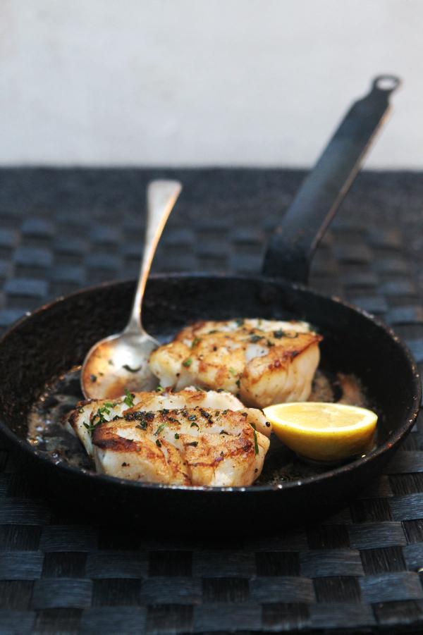 3 Add the rest of the butter to the frying pan that you have cooked the fish in and allow it to melt over a moderate heat. Quickly add the herbs and a squeeze of lemon juice, swirling to combine. Season to taste.