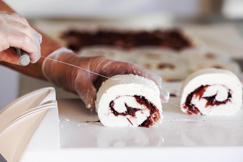 A Christmas favourite is the Ardsallagh with Cranberries where the deliciously creamy goat’s cheese is elevated by pops of cranberry sweetness. Luke says: “We use the Ballymaloe cranberry sauce and it is cooked like a jam but whole cranberries are added which gives it this lovely moreish texture. We then dollop it on the cheese, roll it like a roulade and cut it into slices.