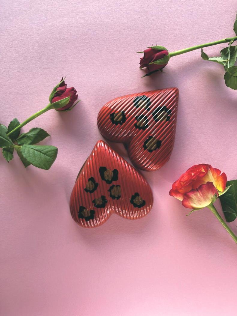 Judit’s creamy milk chocolate hearts are filled with two flavour options: mallow and caramel, or pistachio. They are hand-painted and packaged in a beautiful pink (of course) box (€23, cocoabyjudit.ie).