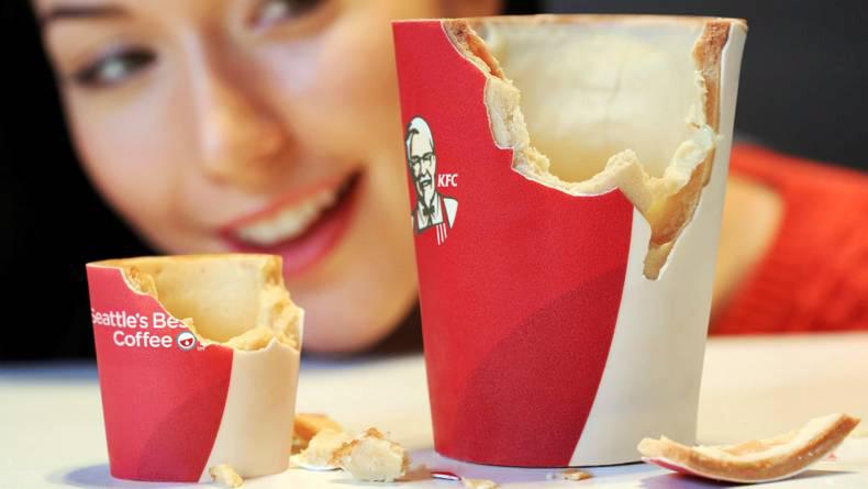 KFC in the UK have invented their first scoff-ee cup which is made from biscuit, wrapped in biscuit, wrapped in sugar paper and lined with a layer of delicious white chocolate. It keeps the coffee hot and the cup crispy. What more could you want? As the coffee begins to melt the chocolate then the biscuit slowly softens, melting in your mouth but not burning your hand. This genius invention was invented by The Robin Collective. The best part is not only do they taste magnificent they also smell delicious too. Different cups are infused with different aromas including Coconut Sun Cream and Wild Grass. Yes, you read right! The edible coffee cups come in a bid to launch KFC’s Seattle’s Best Coffee across its UK branches. The coffee is made from Fairtrade Arabica beans. Although the cups are still being finalized, there is hope they will be on sale by the summer.
