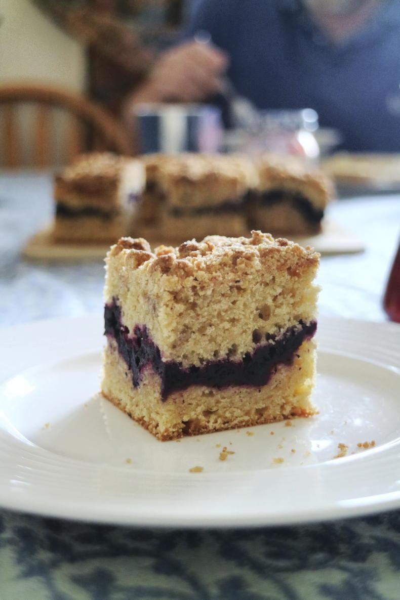 During blueberry season, we make the most of this roadside bounty. My aunties, mother and myself would go out picking the berries by the pint. If the haul was good, we could freeze some. If not, we'd use what we had and bake with them. Muffins, pie and crumbles would follow, as well as blueberry buckle – a cake made from a thick, muffin-like batter; topped with a sweet crumb.